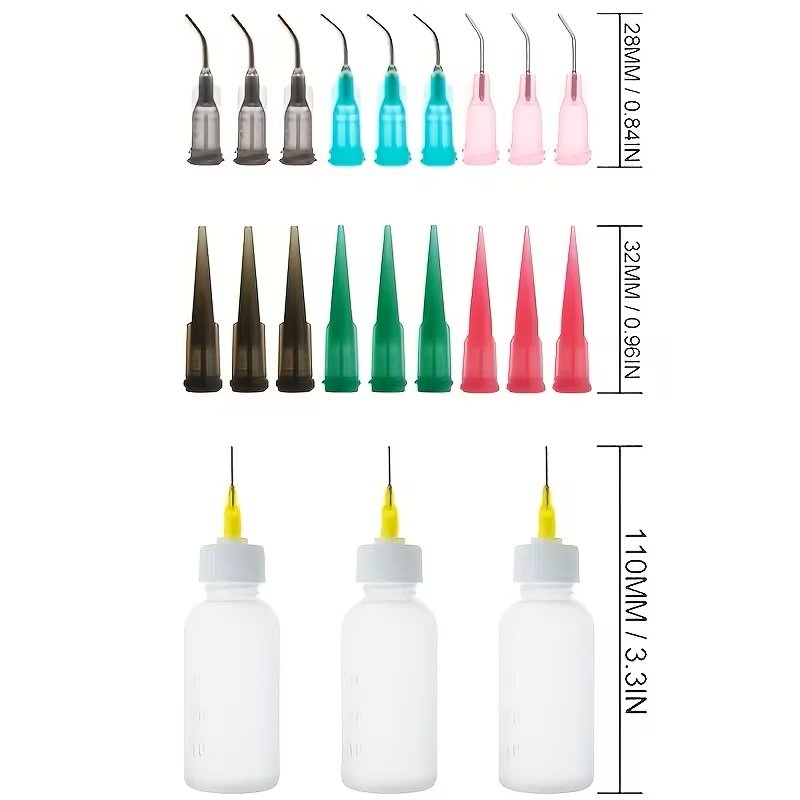 30Cc İğne Yapıştırma Sıkma Şişesi, Hassas İğne Uygulayıcı Şişesi, 6 Şişe, 18 Dağıtıcı ve 12 Kap ile birlikte gelir, Laboratuvar Kapları, Şişeler plastiktendir. Dağıtıcı İğne Şişesi.