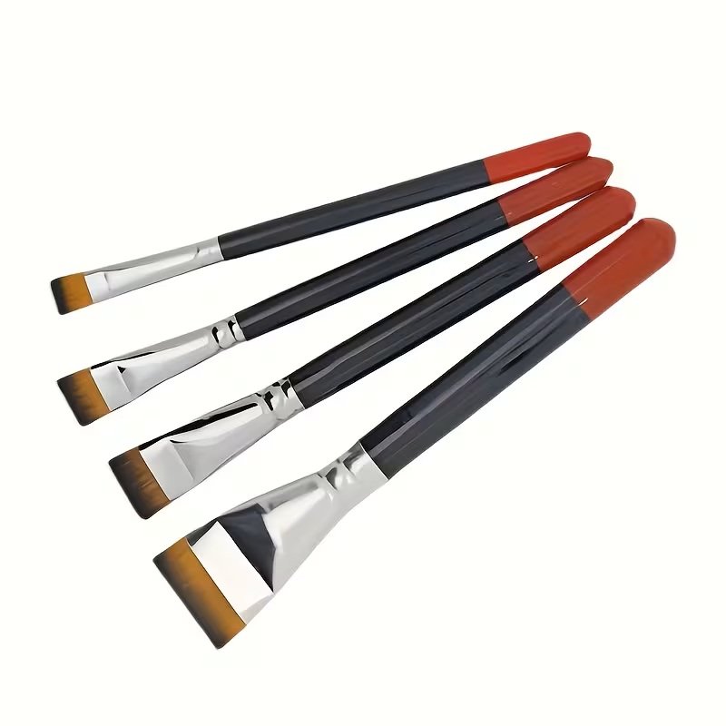 Düz Kesik Fırça Seti 4 Adet-Çini Sırlama, Prüzsüz Uygulama, Akrilik Boya, Yağlı Boya, Resim Fırçası