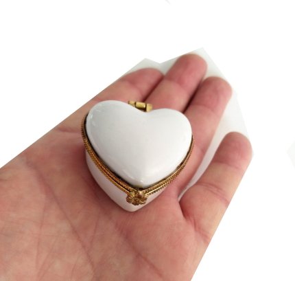 Porselen işlemeli likalı hokka, şık kaliteli zarif hokka, mürekkep kutusu, kalpli beyaz