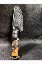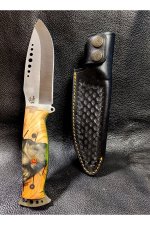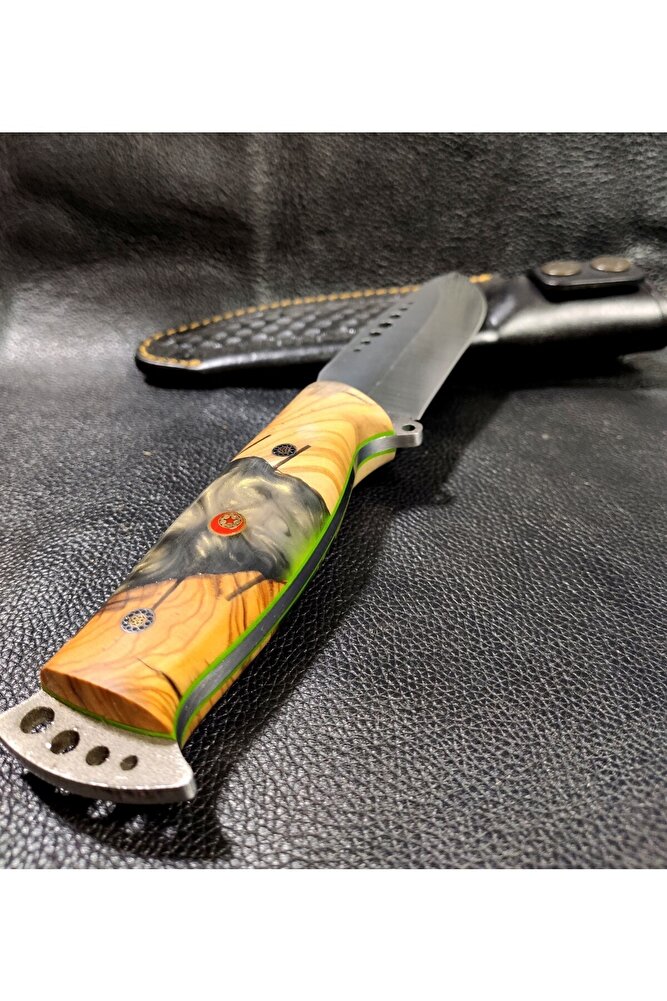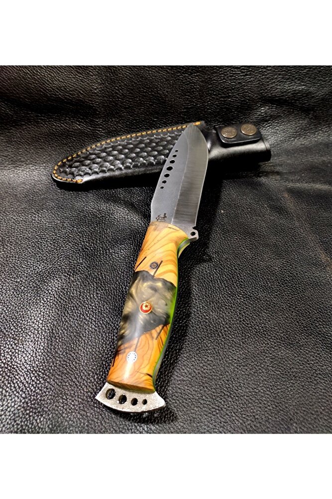 Bıçaklarımız Böhler Türkiye fabrikasında profesyonel olarak ısıl işleme tabi tutulmaktadır (kriyojenik işlem de uygulanmaktadır) Bu eşsiz kamp bıçağı çok amaçlı aktiviteler için tasarlanmıştır. ; Bıçaklar özel deri kılıfı ile gönderilecektir. ; Bu bıçağın ayrıca vurmak veya vurmak için bir zımba uzantısı vardır. ; Çelik: Böhler N690 Paslanmaz Sertlik: 59-60HRC Kalınlık:4mm – 5/32'' Dana Derisi Kılıf * Toplam Uzunluk: 260mm / 10.23'' Bıçak Boyu: 135mm / 5.31'' Sap Malzemesi: Zeytin Ağacı&epoksi reçine hibrit * Özel Tasarımlar Tamamlayıcı Şıklığınız Kendiniz ve sevdikleriniz için çok özel bir hediye.. ; El yapımı deri kılıfı ile birlikte kişisel kullanıma veya hediye edilmeye uygun koleksiyonluk bir üründür. ; Bushcraft Bıçağı/Hayatta Kalma Bıçağı/El Yapımı Bıçak/Kamp Bıçağı/Av Bıçağı/Kılıf Bıçağı;