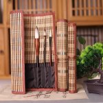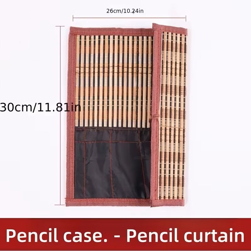 Hasır rulo fırça kalemlik, fırça organizer, bambu kalemlik, fırça düzenleyici, fırça tutucu, 30x26cm