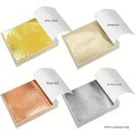 Metalik 4 farklı yaprak varak, gold-silver-rose-şampanya, dekoratif, epoksi reçine-9x9cm-400sayfa