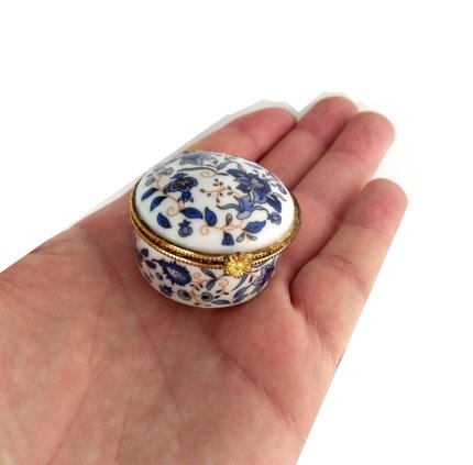 Porselen işlemeli likalı hokka, şık kaliteli zarif hokka, mürekkep kutusu, yuvarlak mavi