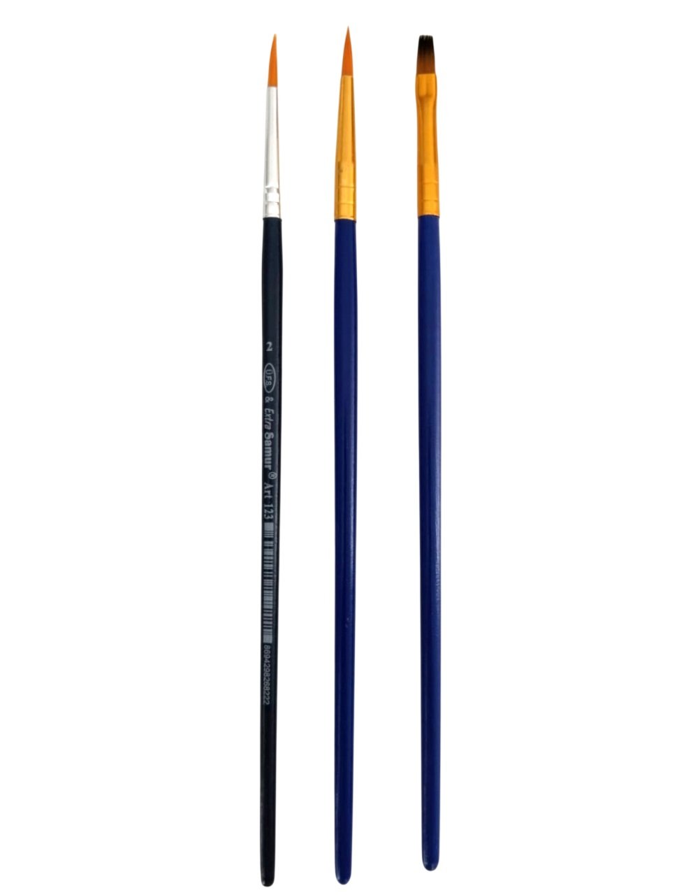 Samur 3’lü Hobi Karışık Akrilik Fırça Seti, düz kesik fırça, sivri uç fırça, hobi fırça seti