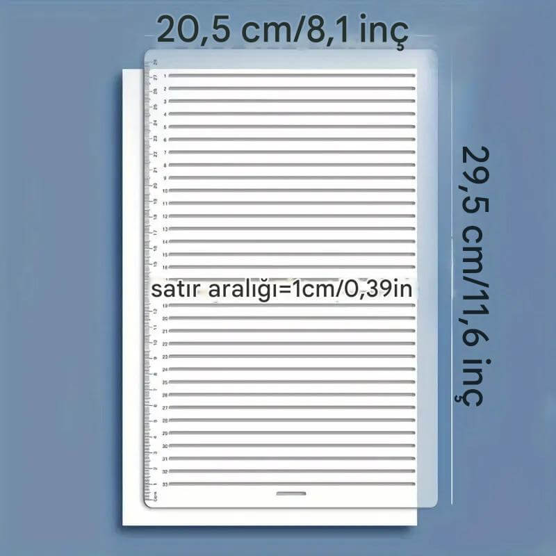 Pratik şekilde nib ölçülü, satırları çizmenizi sağlar.; Kaligrafi, copperplate, arapça hat, tezhip, minyatür, karakalem gibi bir çok sanat alanında kullanılır.; 1 cm aralıklarla yatay veya dikey çizgilerinizi kolay ve hızlı bir şekilde oluşturabilirsiniz.