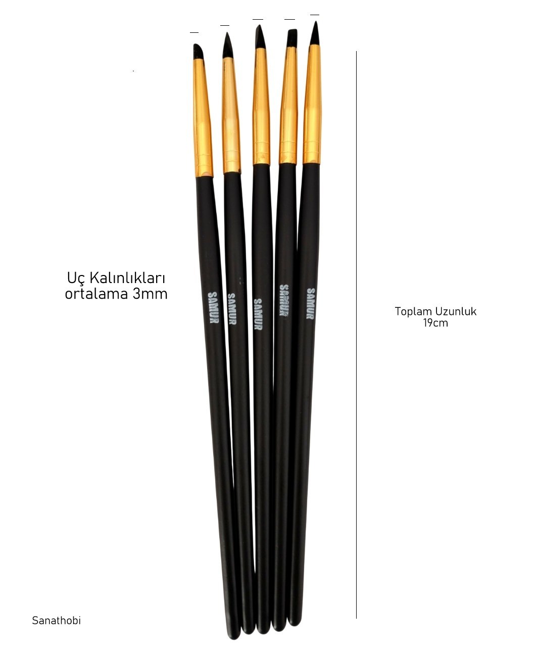 Samur 5'li Silikon Fırça Seti, modelaj, seramik, karakalem ve pastel tekniklerde kullanılmak üzere geliştirilmiş özel silikon uçlu fırçalardan oluşur. Yüzey şekillendirme, ton yumuşatma ve desen verme işlemlerinde kontrollü sonuçlar sunar.