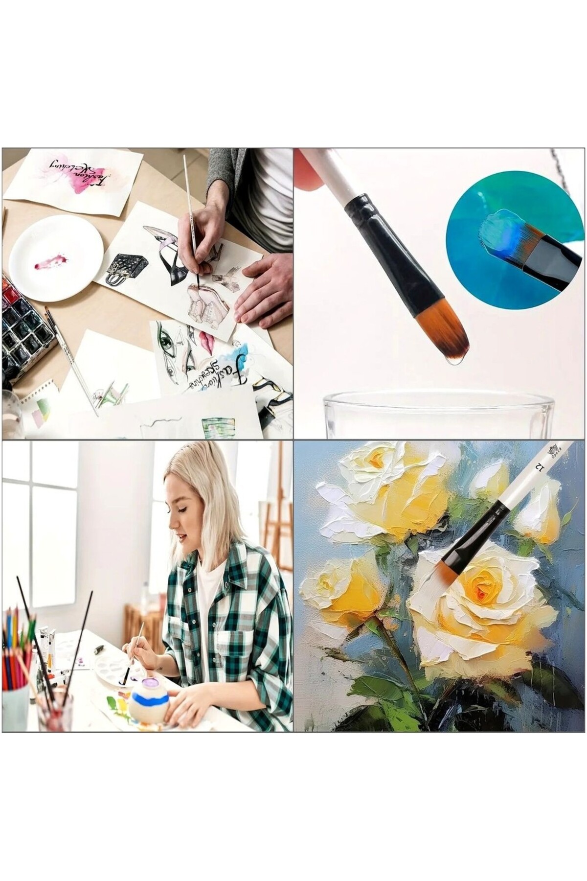 Yan Kesik Uçlu Fırça Seti 6 Adet-Akrilik Boya, Yağlı Boya, Guaj Boya, Resim Fırçası
